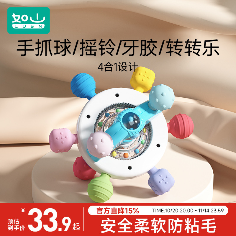 如山曼哈顿手抓球婴儿硅胶可咬磨牙胶玩具0一1岁宝宝抓握训练3到6