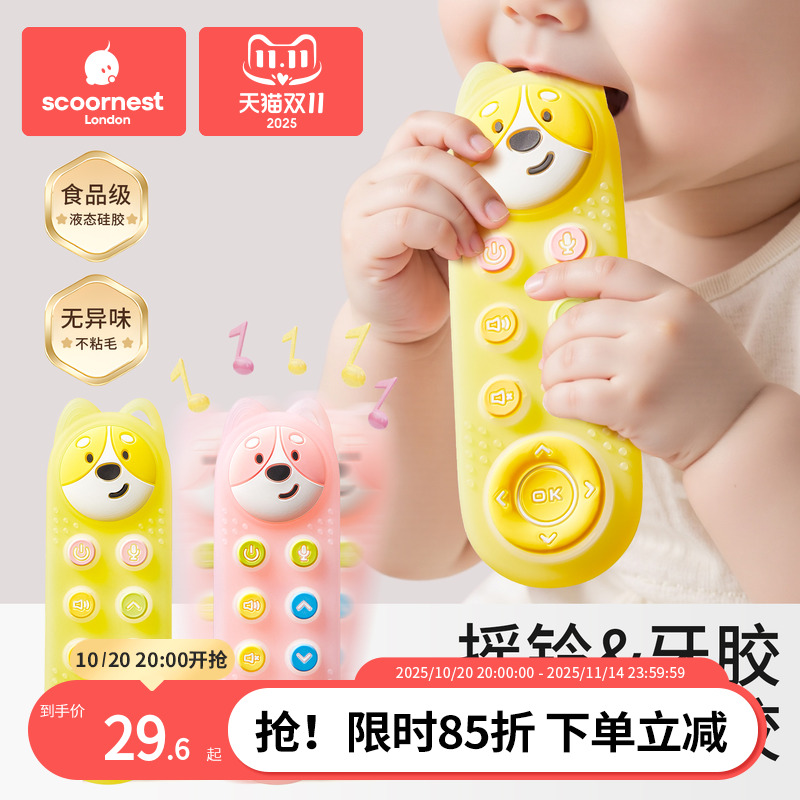 遥控器牙胶婴儿磨牙棒口欲期小月龄咬胶4个月宝宝硅胶可啃咬玩具