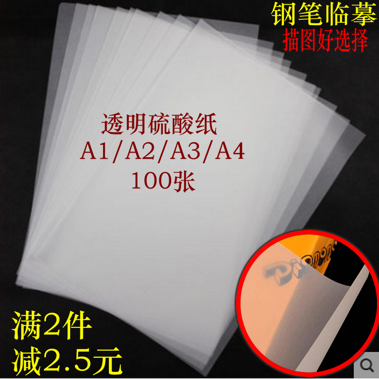 a4硫酸纸透明描图纸临摹纸a3拷贝纸a2描图画画转印纸建筑设计草图纸拓印纸硫磺纸烘焙纸钢笔练字专用纸书写