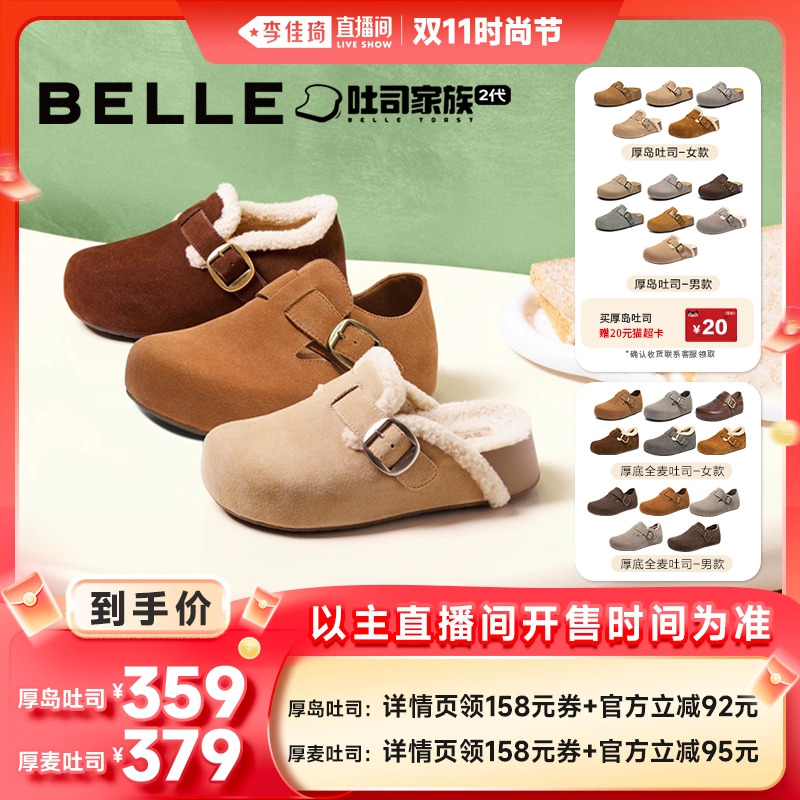【李佳琦直播间时尚节】百丽女鞋厚岛/厚麦吐司鞋厚底毛里勃肯鞋
