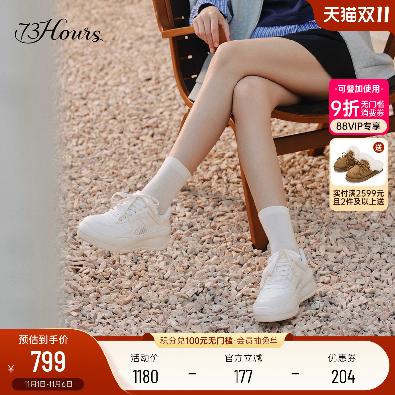 73hours女鞋长腿滤镜2025秋季新款时尚小白鞋板鞋厚底运动休闲鞋