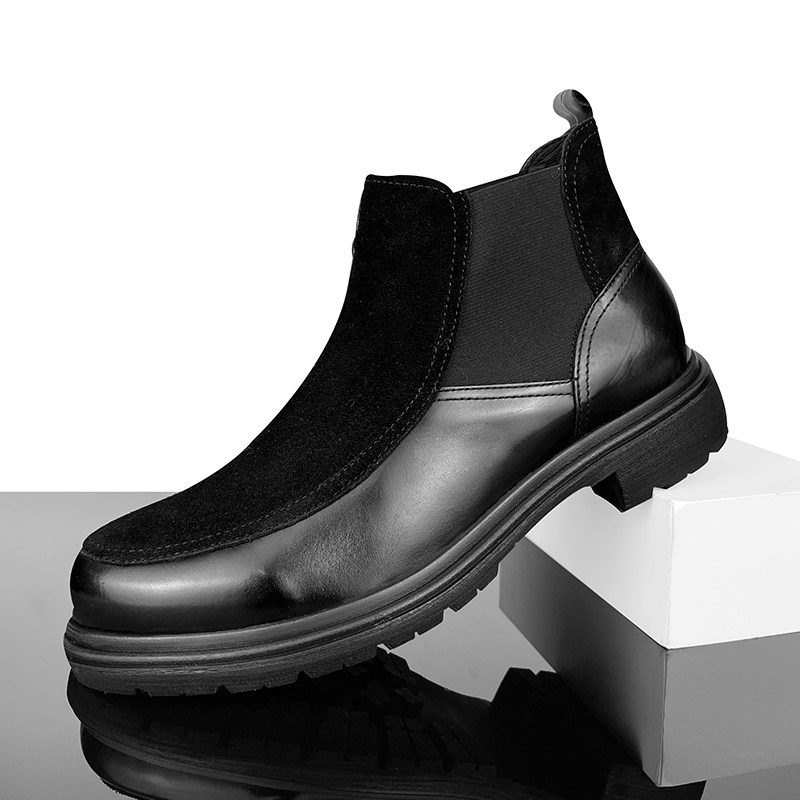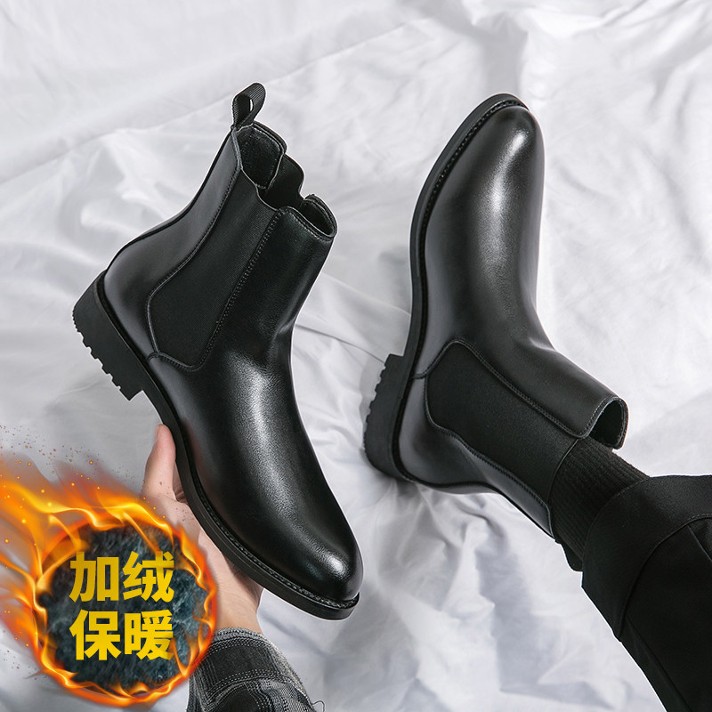 秋冬马丁靴男翻毛皮切尔西靴加绒冬季男鞋休闲防滑保暖黑武士男款