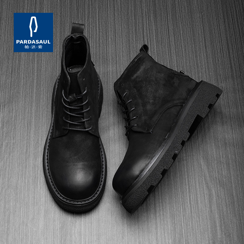帕达索秋冬马丁靴男短靴加绒保暖男鞋英伦风真皮靴子工装靴230837