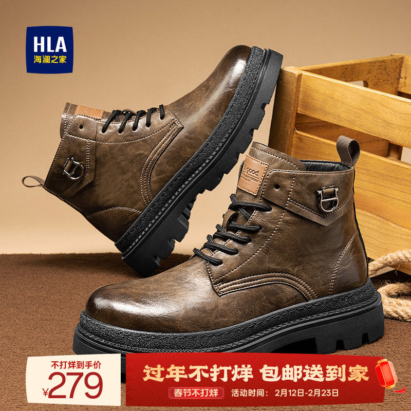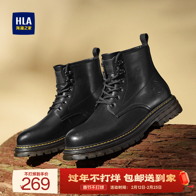 HLA/海澜之家男鞋新款秋冬马丁靴男黑色潮流工装靴英伦风男靴靴子