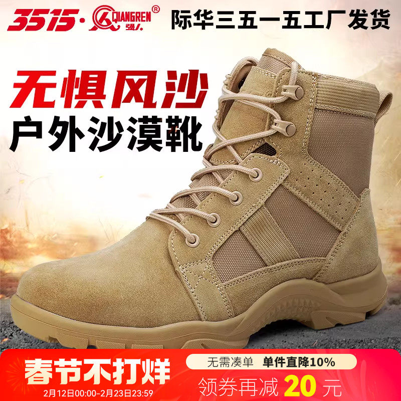 际华3515强人秋冬马丁靴男士超轻户外沙色训练靴透气登山靴工装靴