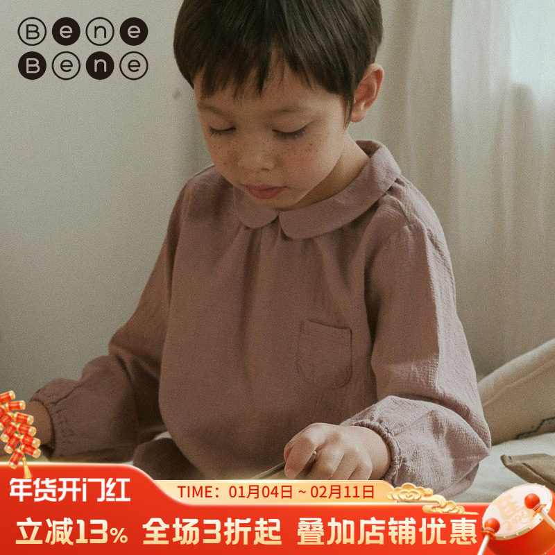 benebene韩国童装新春季纯棉婴儿娃娃领长袖雪纺衫男童女童衬衣