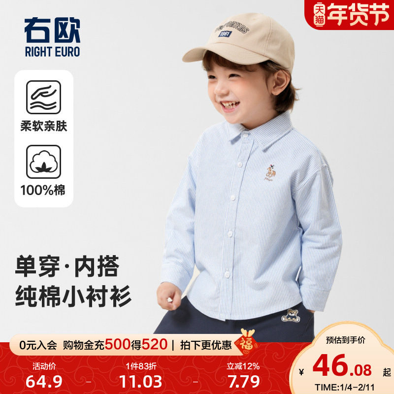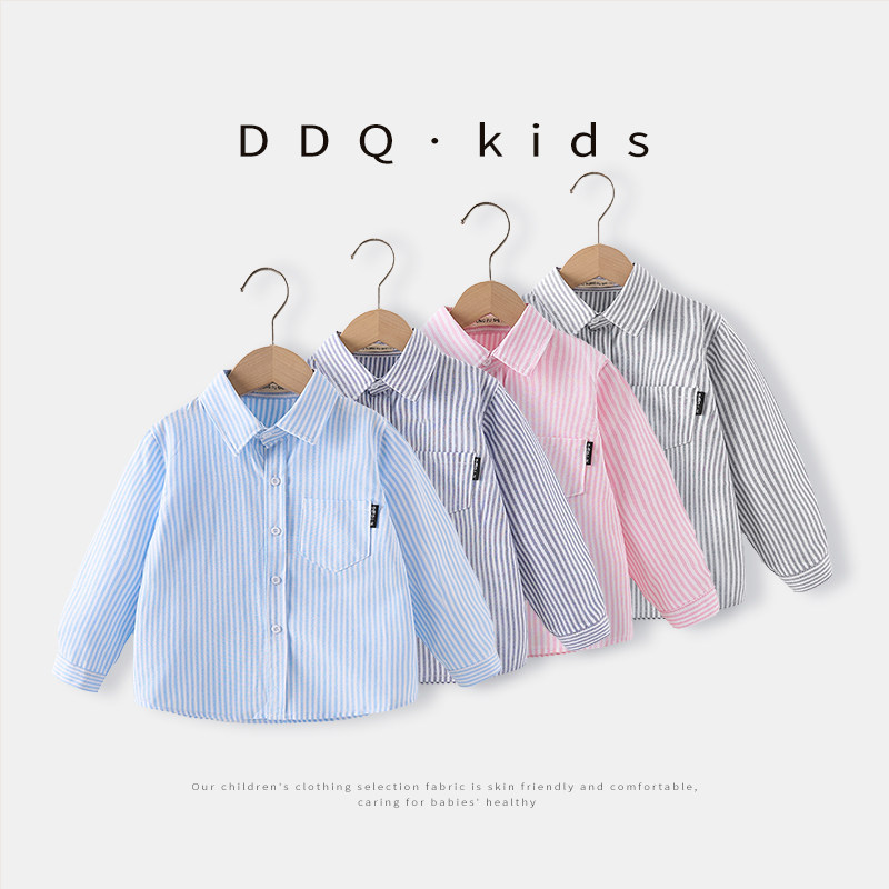 右欧男童衬衫童装长袖条纹纯色春装新款女童衬衣宝宝上衣儿童衣服
