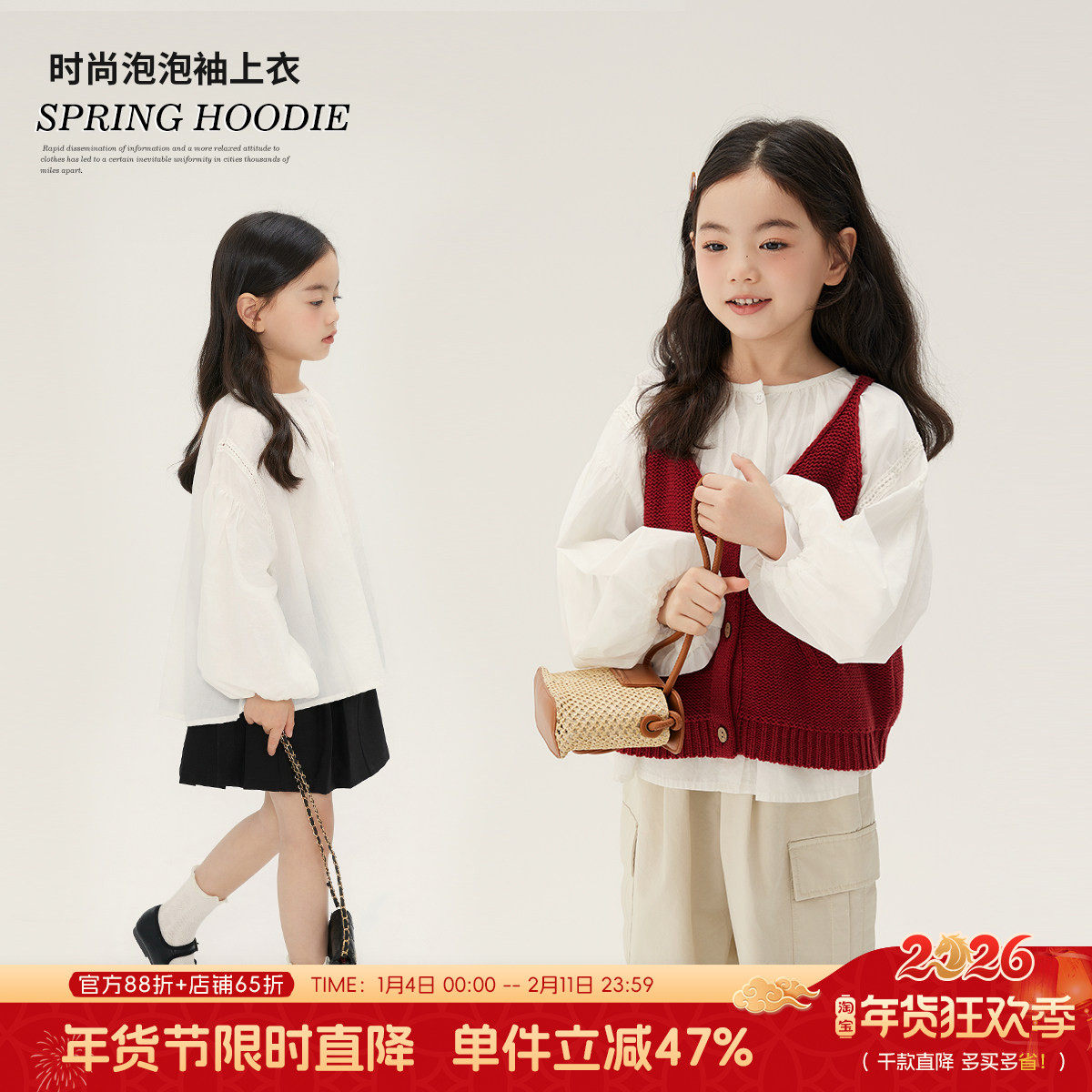 布丁哈鲁童装春装女童衬衣2026春秋秋季新款儿童白色长袖衬衫纯棉