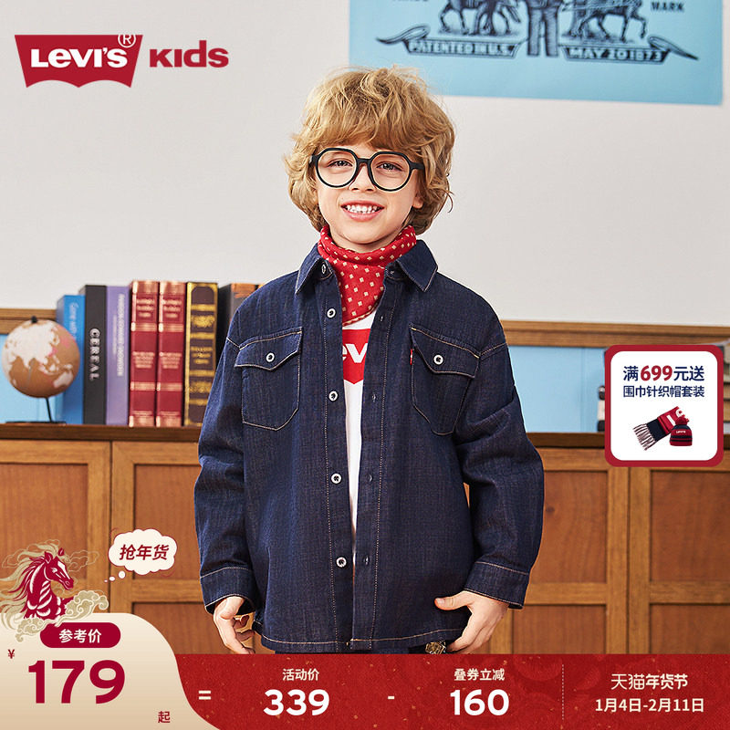 Levis李维斯儿童牛仔衬衫外套夹克2026春装新款男童女童衬衣童装
