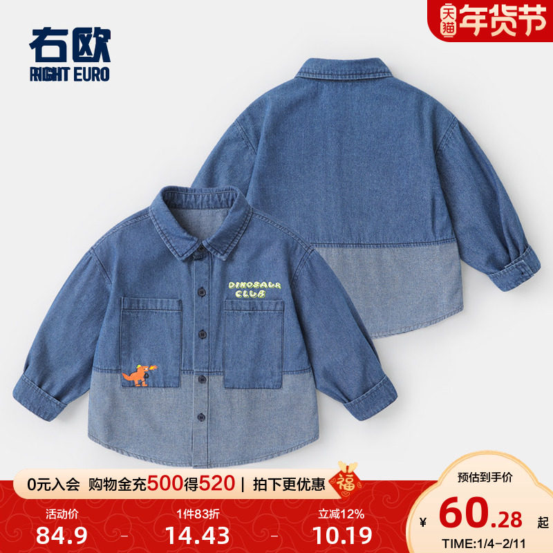 右欧男童牛仔衬衫女童衬衣洋气时髦2025年新品春秋款童装儿童内搭