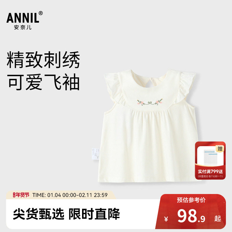 安奈儿童装女童衬衣2025夏新款小童印花短袖宝宝可爱宽松圆领T恤