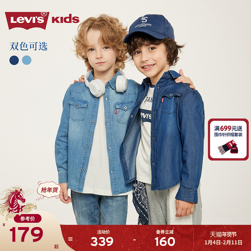 Levis李维斯儿童牛仔衬衫2026春装新款经典水洗男童女童衬衣童装
