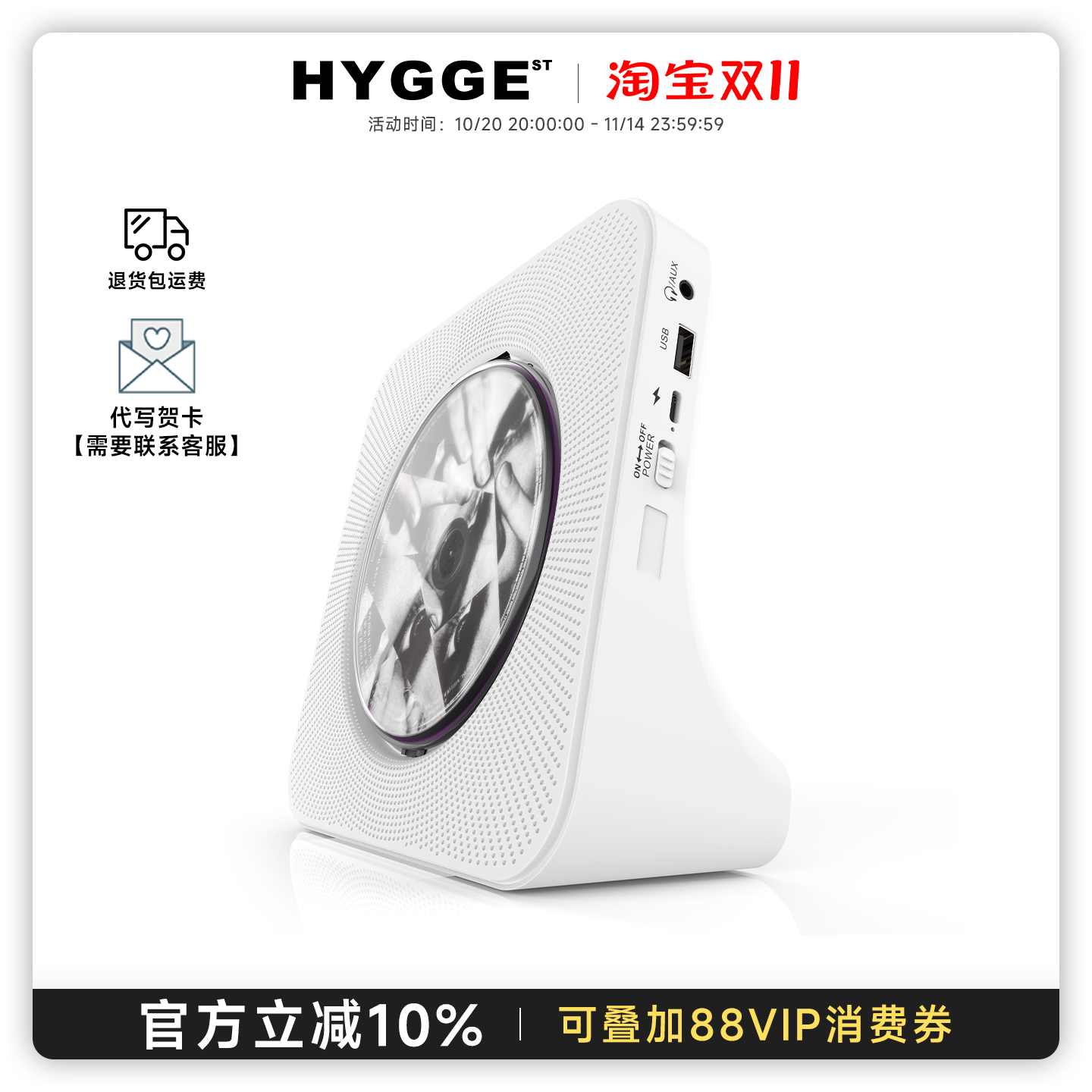 HYGGE充电式cd机便携生日礼物光盘播放器蓝牙音响专辑黑胶ins同款