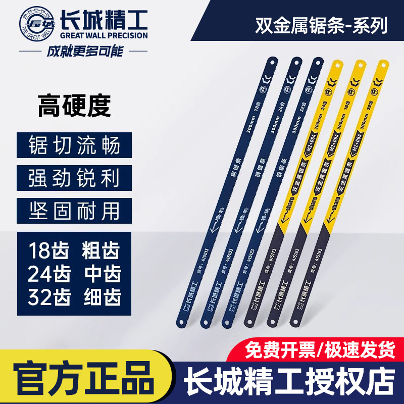 长城精工双金属锯条手工锯木工12寸高硬度锯架条细中粗齿18/24/32
