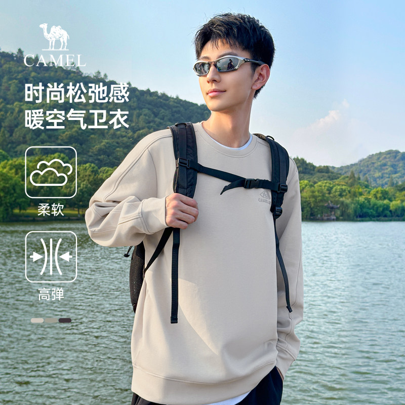 骆驼男装情侣卫衣男秋冬季2025款宽松套头美式重磅长袖上衣男