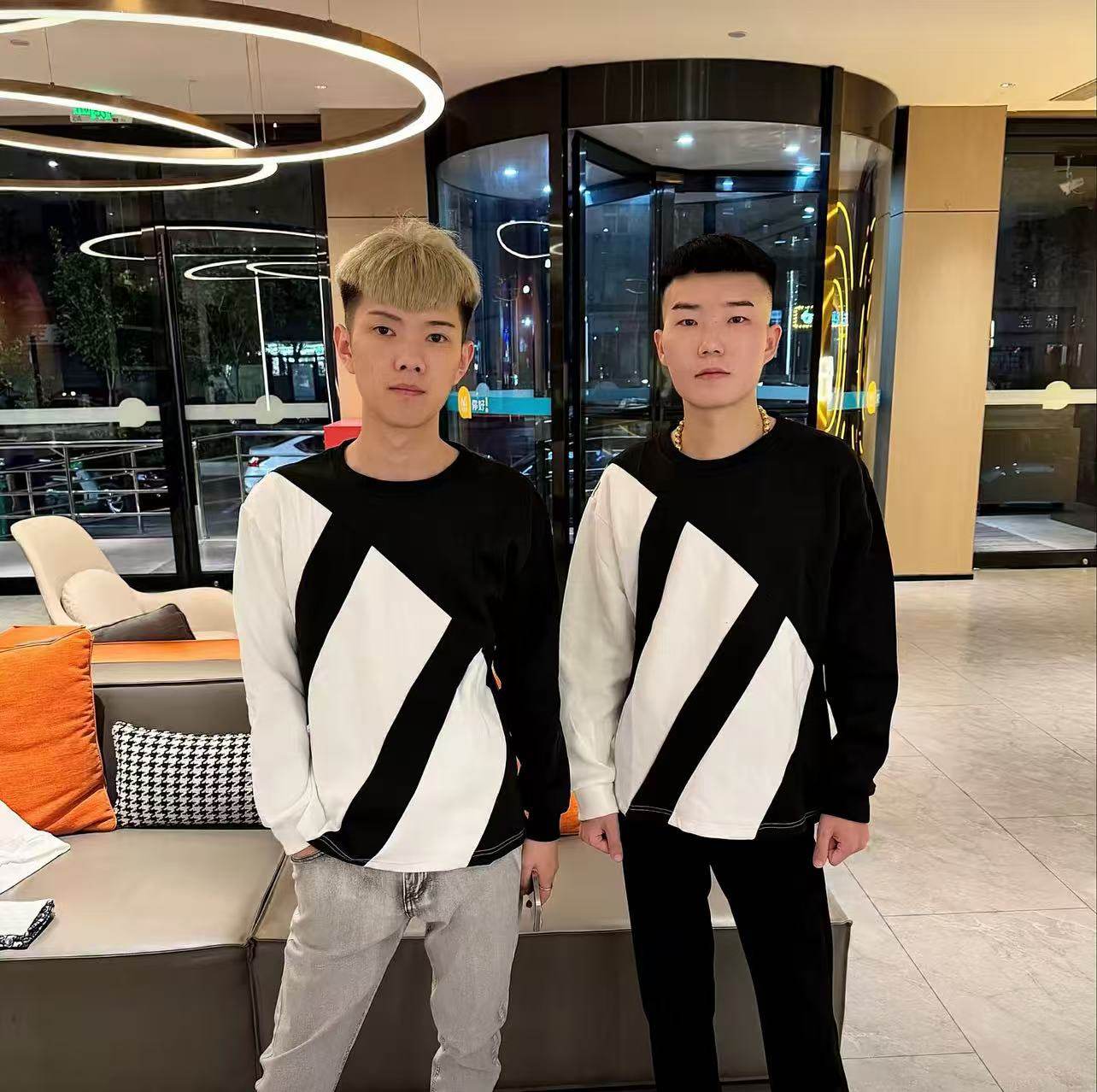 秋冬新款男卫衣时尚拼接港风百搭上衣黑白圆领套头情侣装长袖卫衣