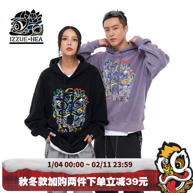 HEA X i.t izzue联名新款潮牌醒狮狮头连帽长袖卫衣男秋季情侣装