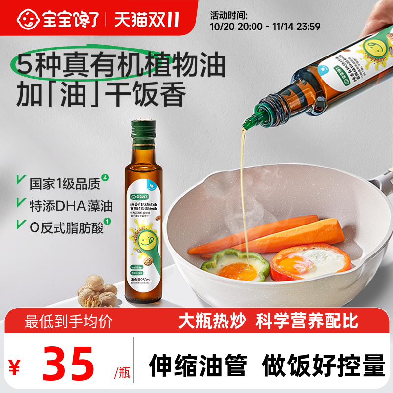 宝宝馋了有机核桃油热炒油亚麻籽辅食食用油送宝宝婴幼儿童辅食谱