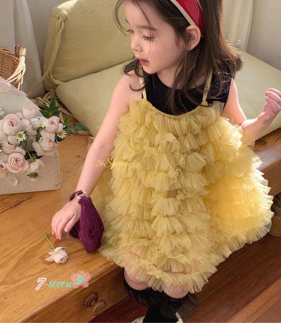 7seven·26春装新款女童网纱拼接连衣裙甜美公主裙9596 + 9651