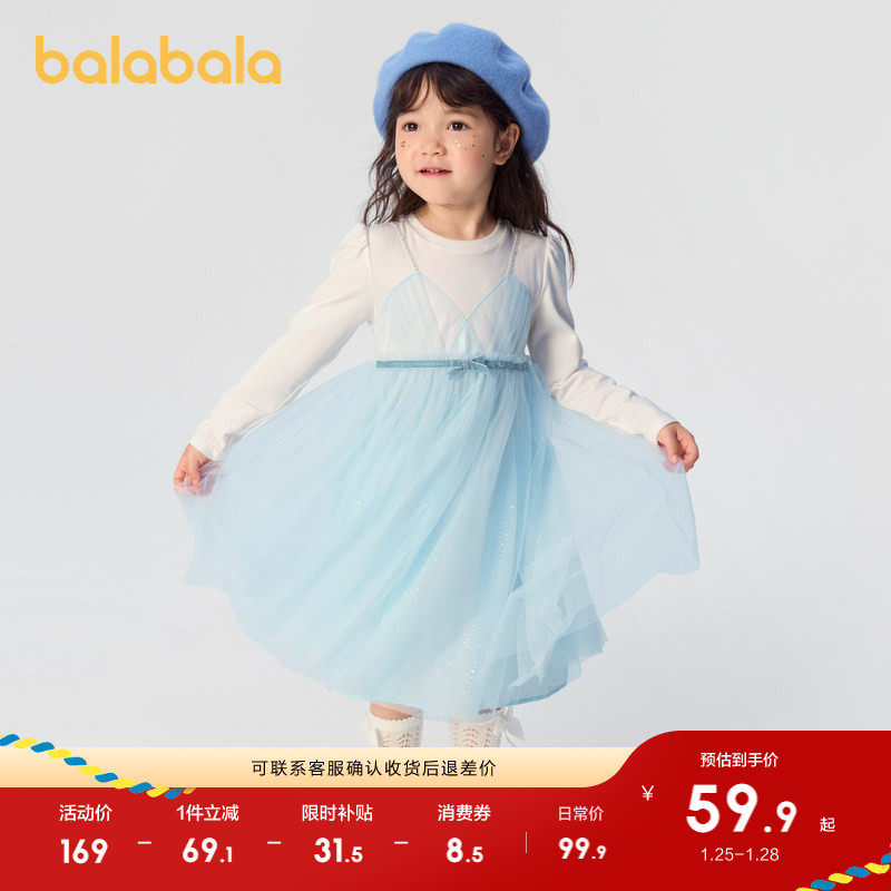 巴拉巴拉童装儿童裙子女童连衣裙2025秋新款中幼童甜美拼接网纱裙