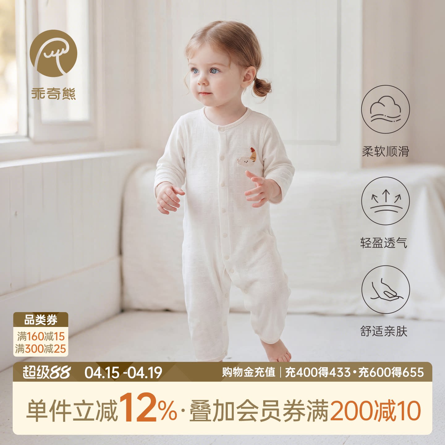 乖奇熊莫代尔婴儿连体衣春夏季无骨睡衣宝宝长袖家居服哈衣空调服