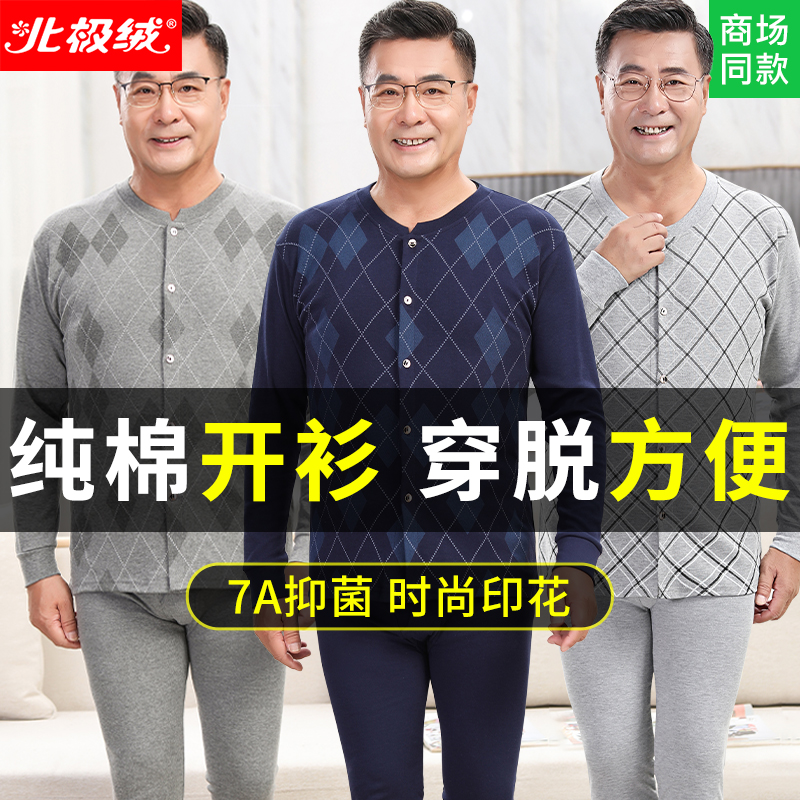 爸爸秋衣秋裤套装纯棉中老年人对襟开衫保暖内衣男全棉男士棉毛衫