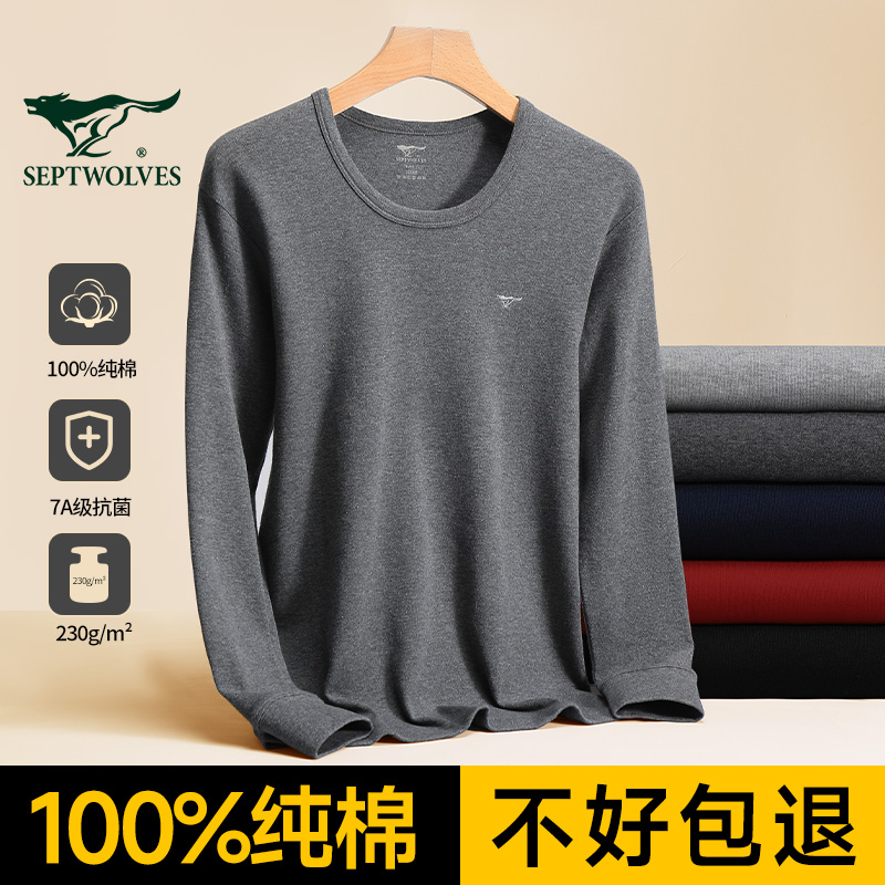 七匹狼保暖内衣男款套装纯棉薄款秋衣秋裤男士棉毛衫100%全棉衬衣