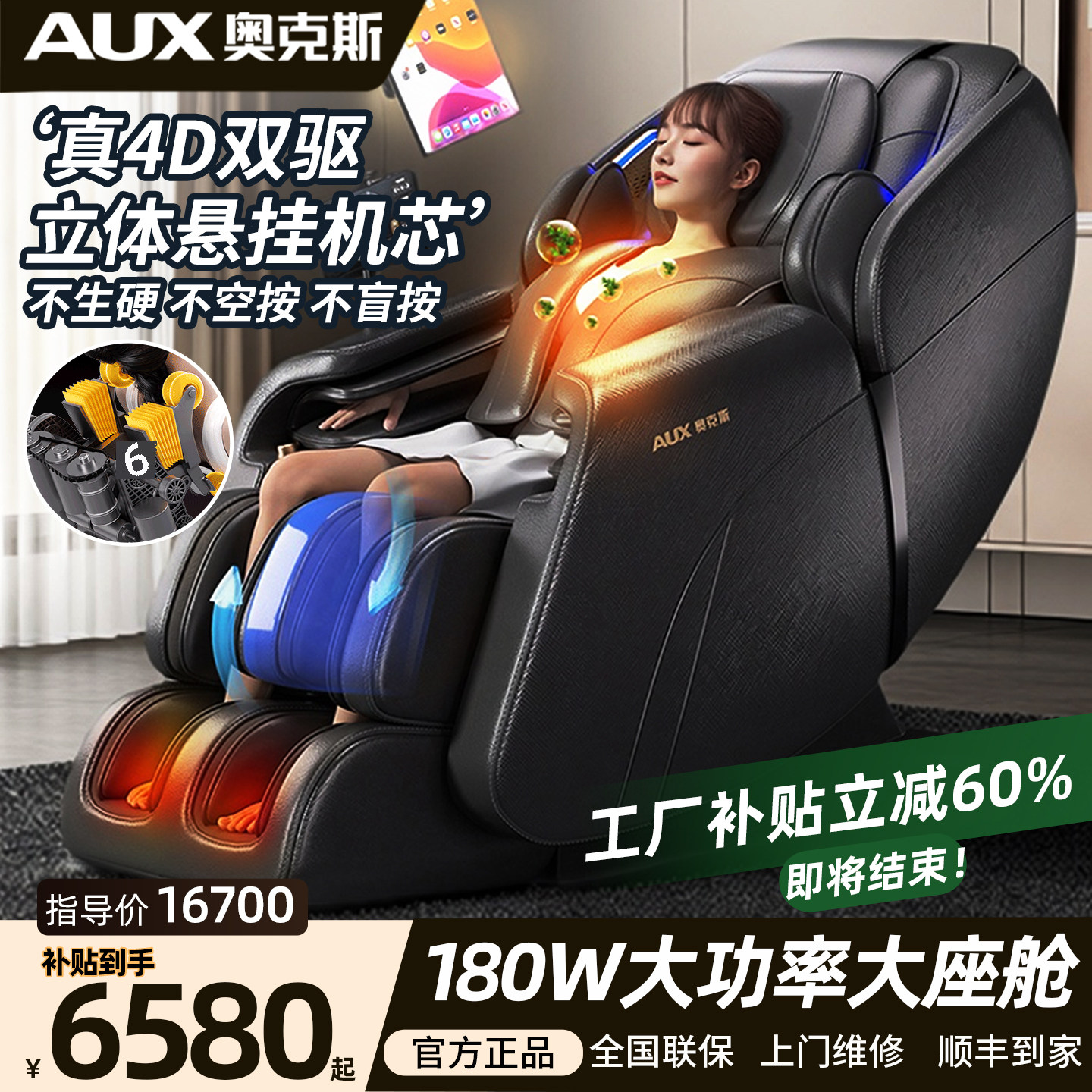 奥克斯高端4DUItra齿轮机芯2026新款按摩椅大座舱智能全自动电动
