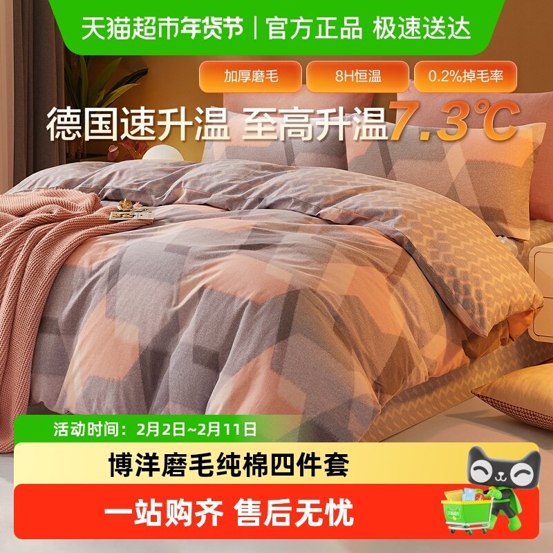 洁丽雅加厚磨毛四件套纯棉全棉2025新款被套床单床上用品三件套