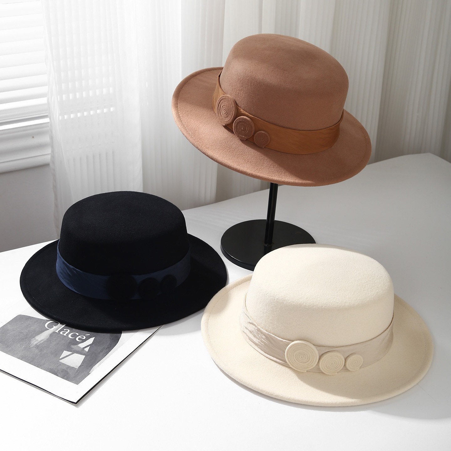 小香风秋冬新款平顶羊毛礼帽百搭逛街穿搭日常法式平沿男女潮流款