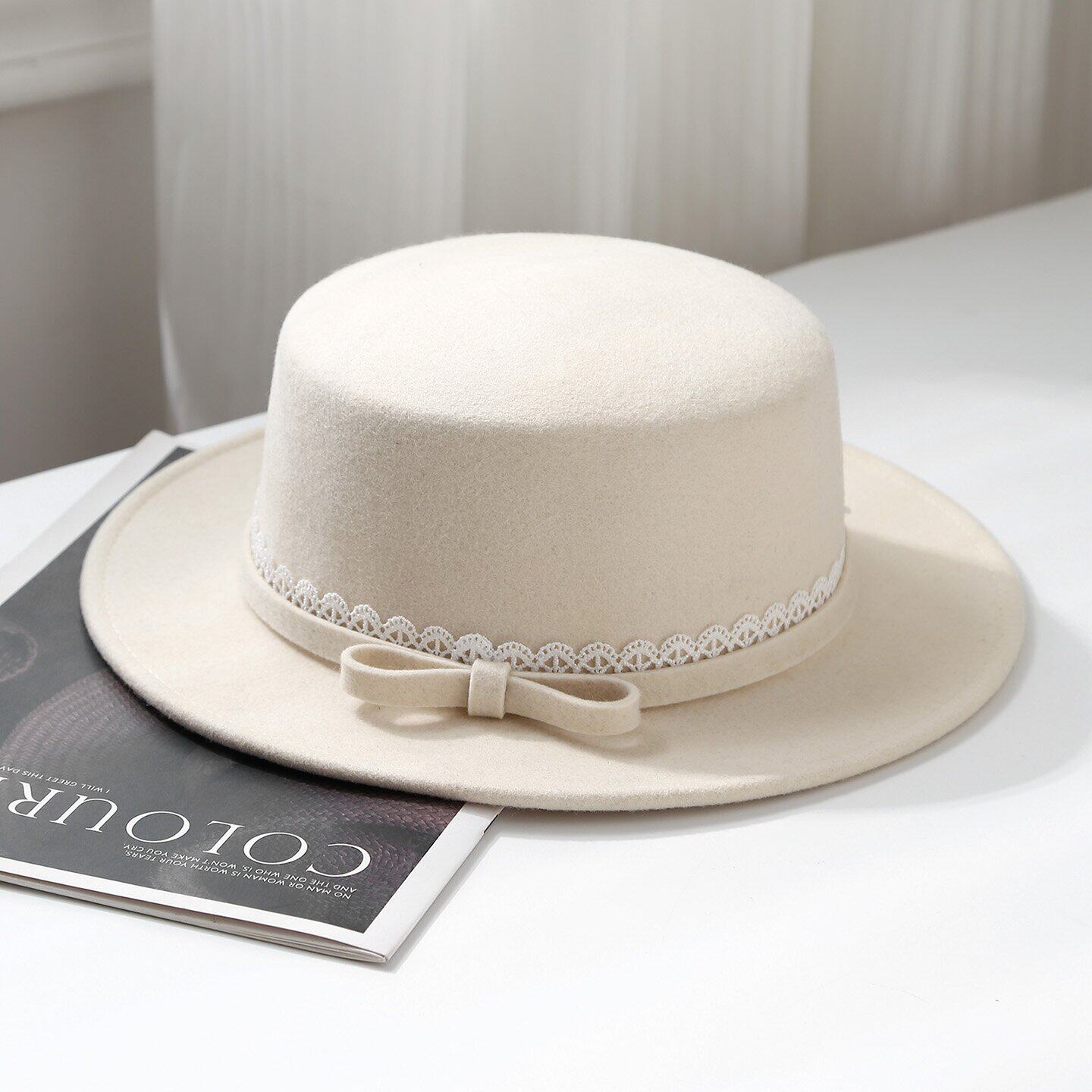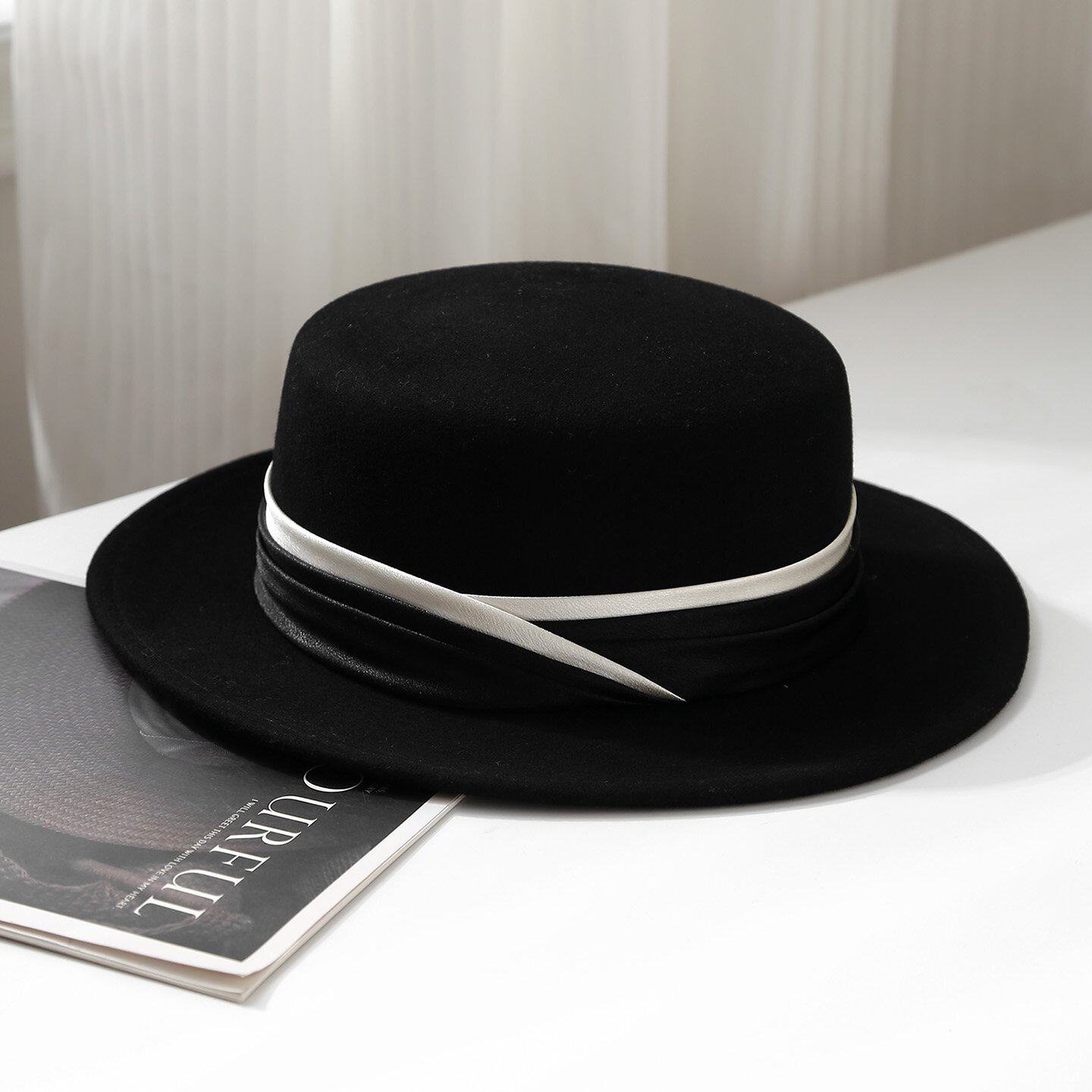 白色平顶羊毛礼帽优雅高级女千金风平沿逛街出游百搭保暖防风黑色