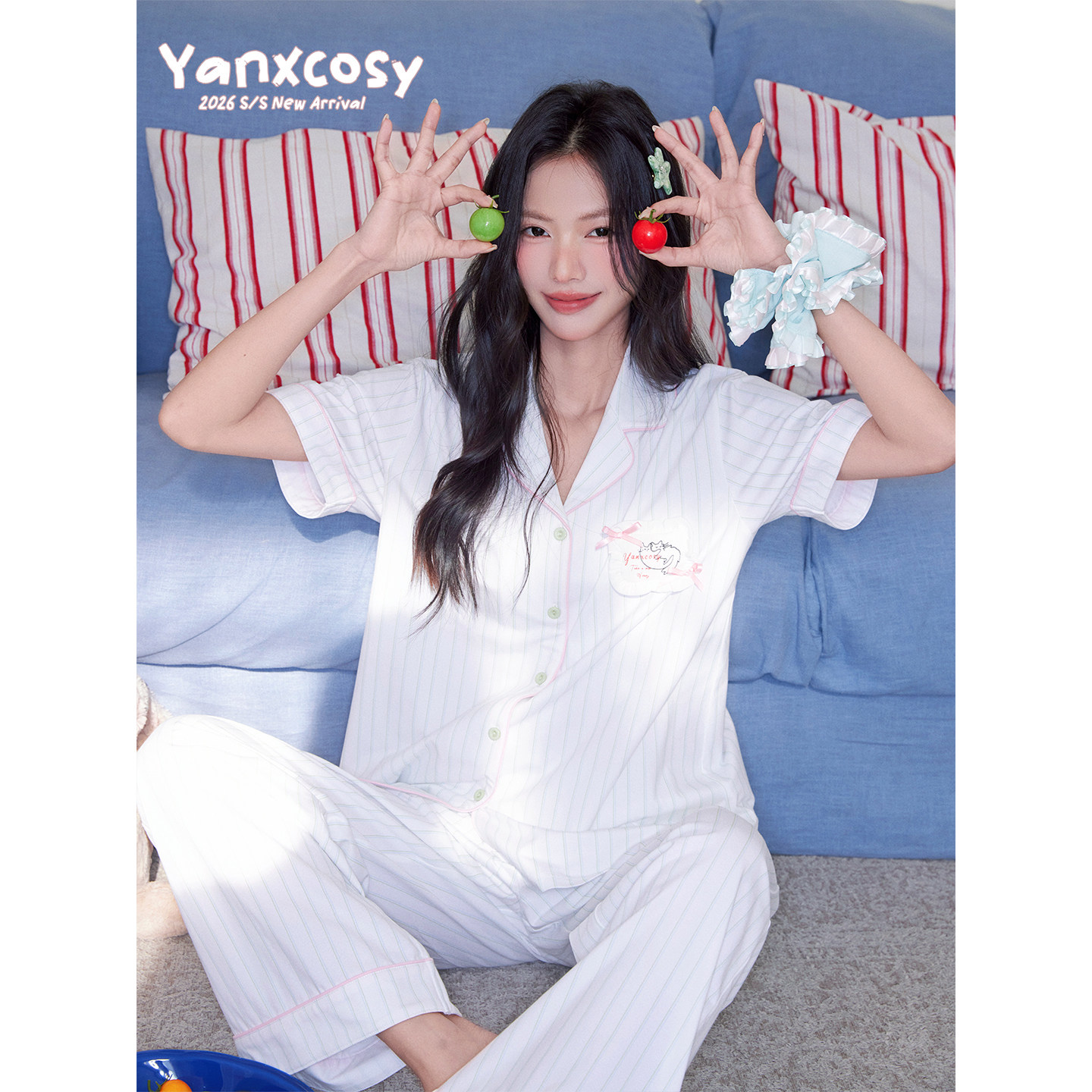 Yanxcosy2026春夏新款宽松凉感家居服女短袖长裤条纹纯棉睡衣套装