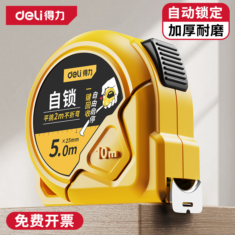 得力卷尺5米加厚加硬家用小尺子3米正品钢卷尺10米量尺盒尺测量尺