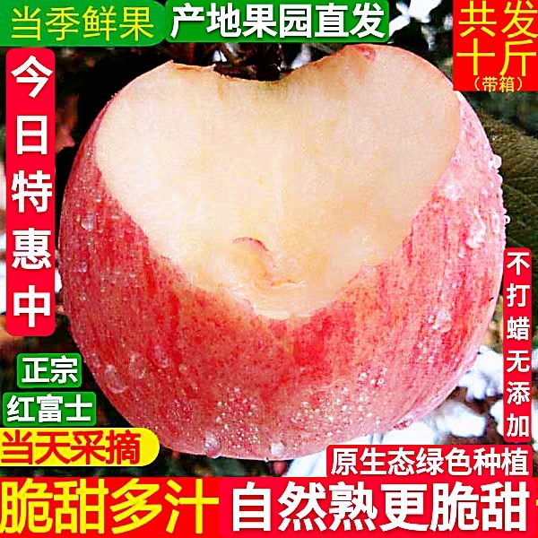 正宗陕西苹果5斤新鲜水果脆甜多汁非糖心红富士整箱包邮产地直发