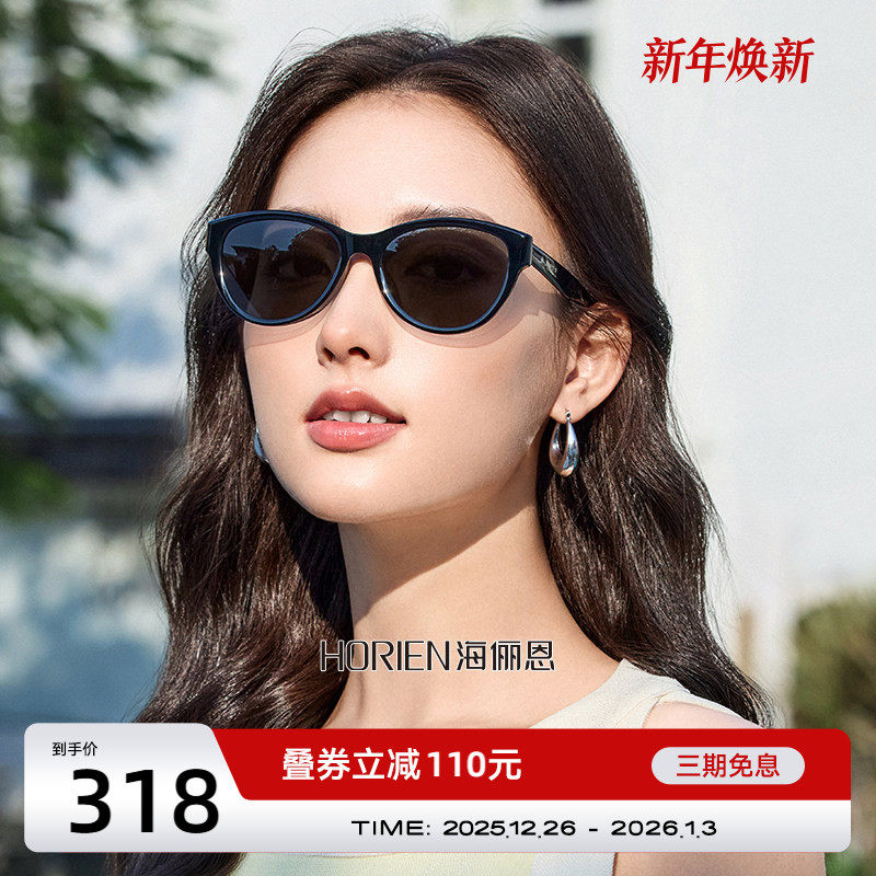 海俪恩复古圆框猫眼墨镜女式25新款夏季防晒潮黑男士太阳眼镜8509