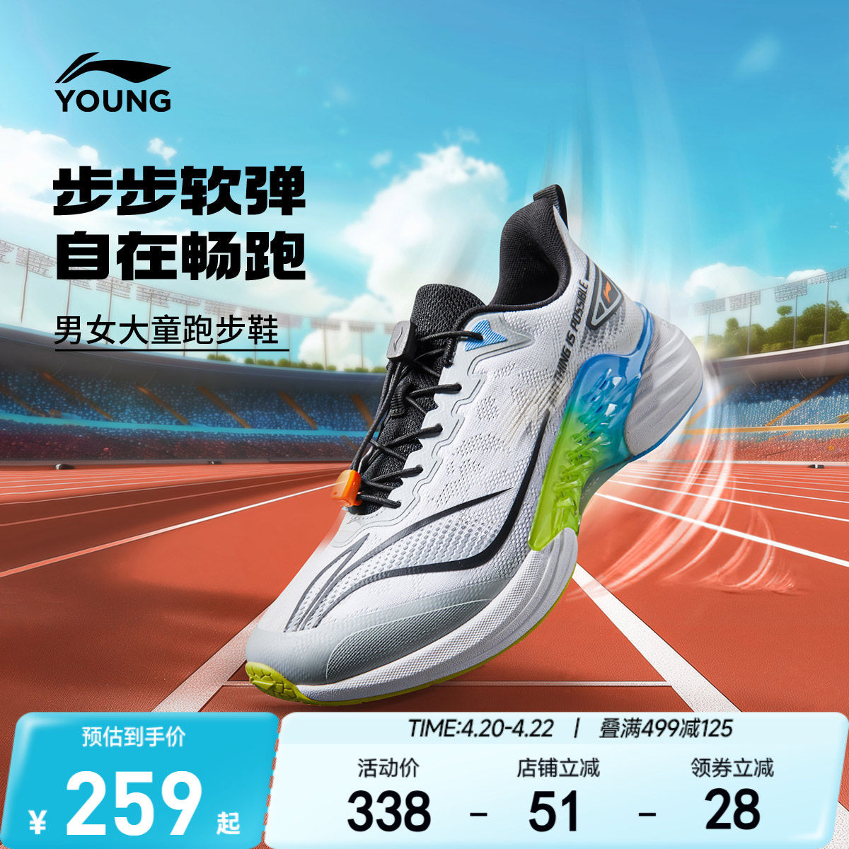 李宁儿童运动鞋轻质舒适男童鞋中大童女童春夏款青少年软底跑步鞋