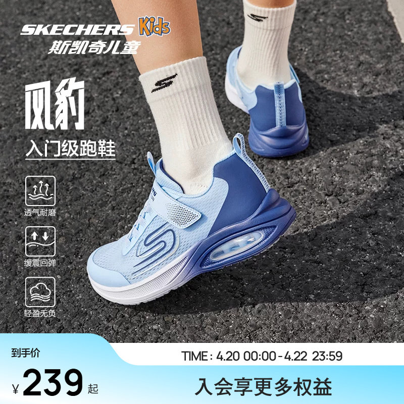 skechers斯凯奇儿童风豹跑鞋男童透气跑步鞋青少年中大童运动鞋子