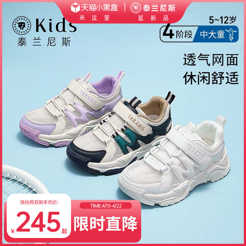 泰兰尼斯kids春夏款中大童舒适透气运动鞋女童休闲鞋男童小白鞋