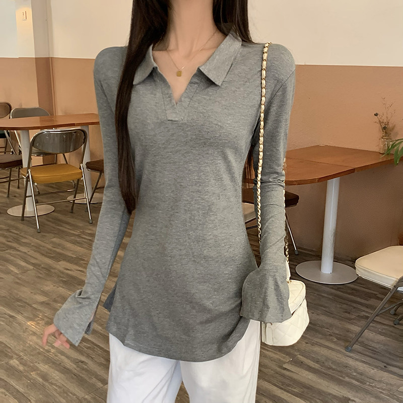 翻领长袖t恤女中长款相关商品