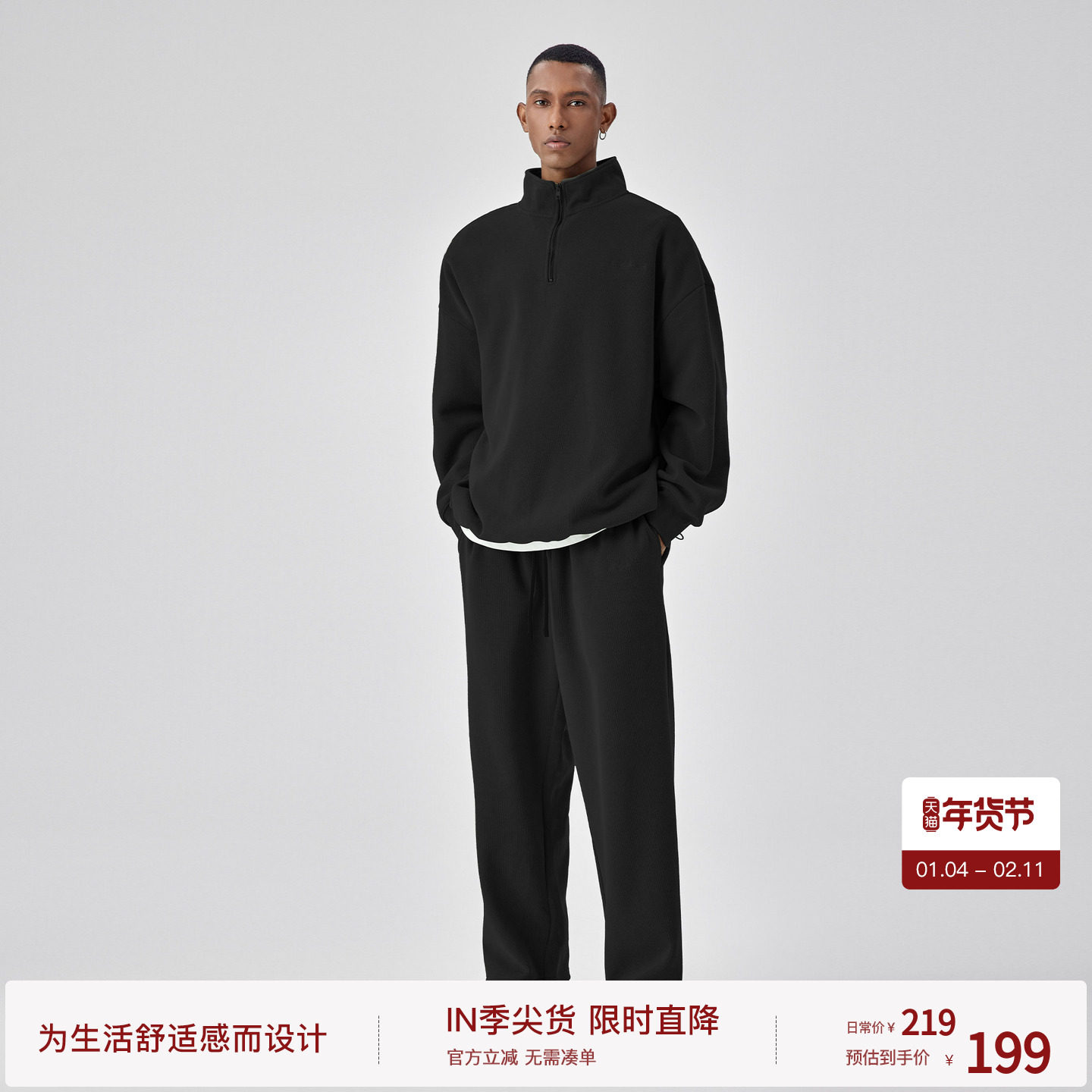 YUXIAN空气感立领半拉链运动卫衣长袖保暖套头休闲外套抗皱秋冬男