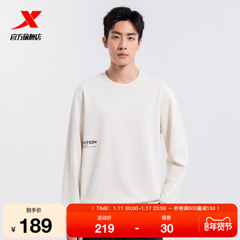 安踏卫衣男长袖t恤秋冬新款圆领宽松休闲运动上衣套头衫无帽外套