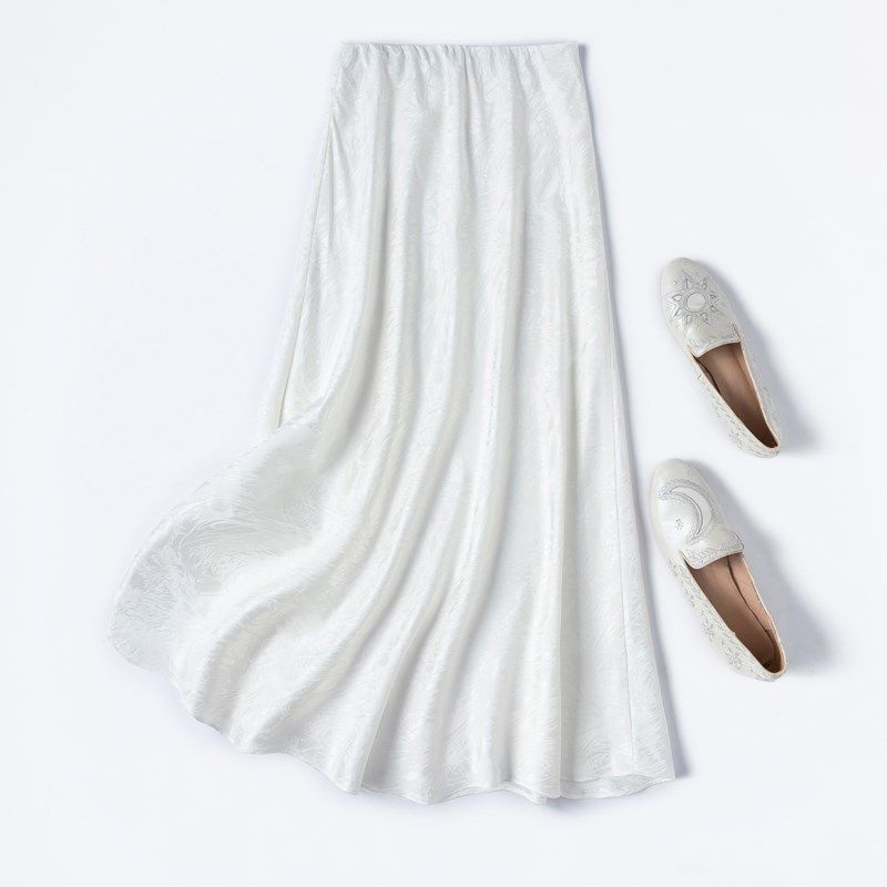 “白色梦境”斜裁真丝弹力提花缎优雅包臀鱼尾裙半身裙开叉中长裙