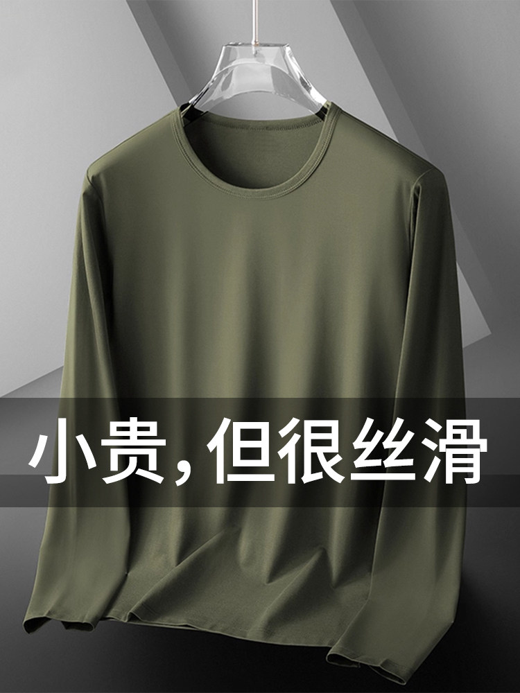 【200支双面液氨】高端T恤男长袖丝滑垂感打底衫2025秋冬纯色丝光