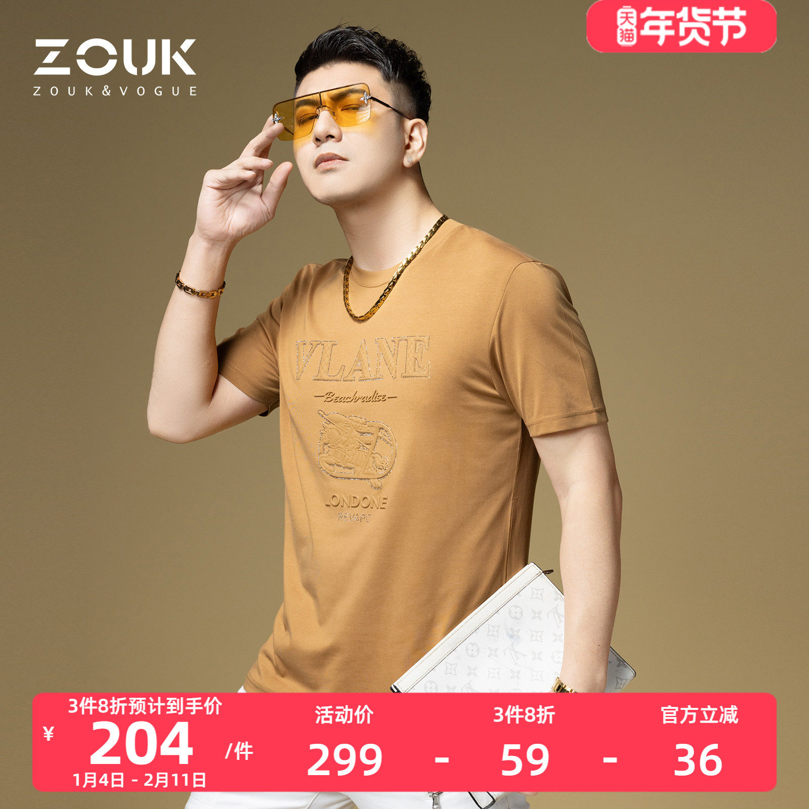 ZOUK欧货男装2021新款高端t恤男短袖骏马印花烫钻潮牌百搭体恤夏