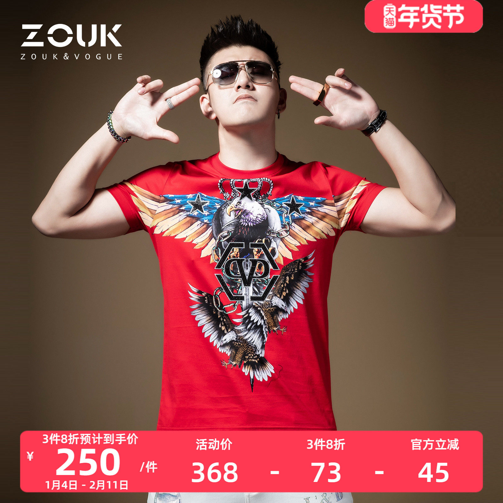 ZOUK欧洲站男装2021新款高端t恤男短袖老鹰印花烫钻潮牌百搭修身