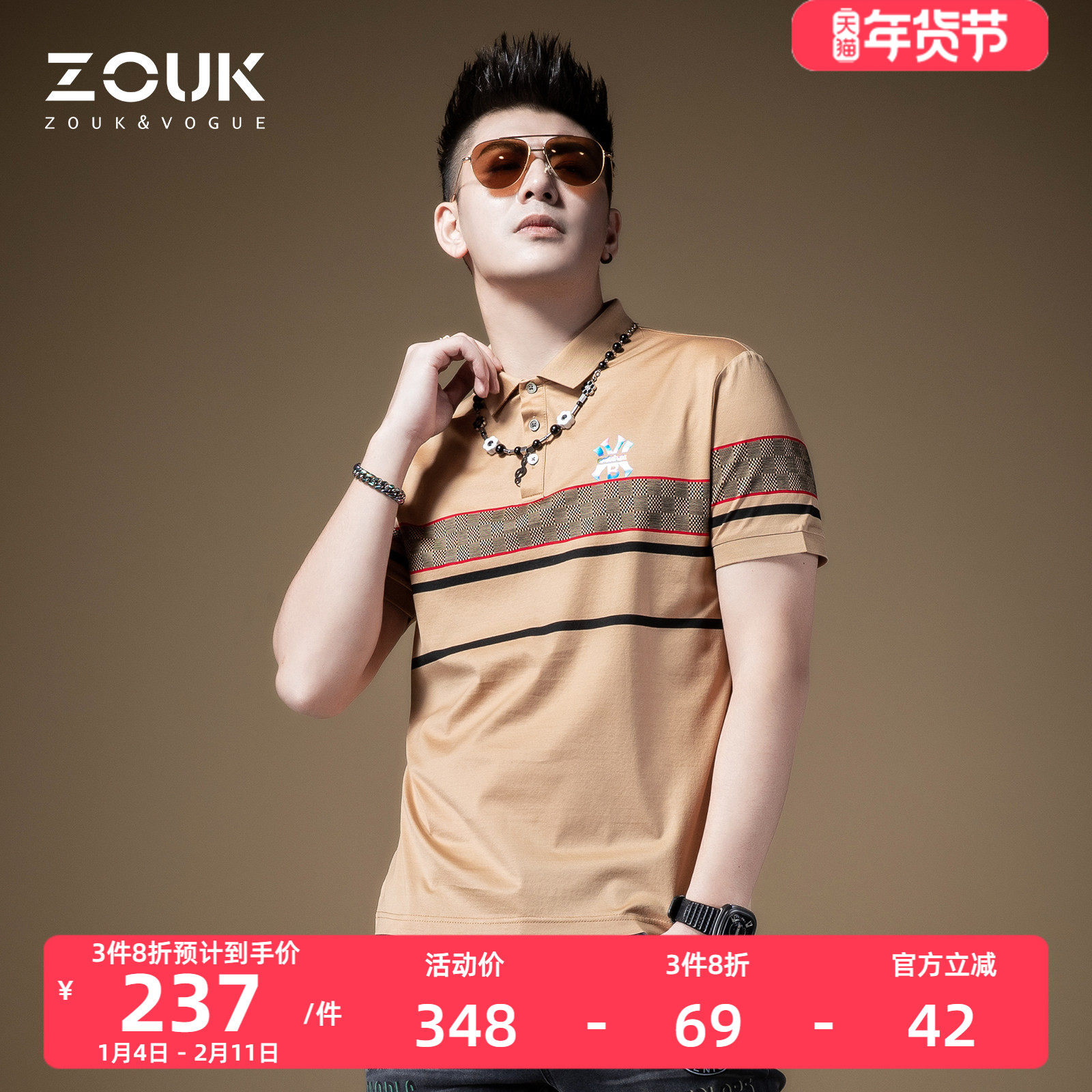 ZOUK商务休闲高端t恤男撞色条纹翻领短袖男款polo衫潮牌修身夏季