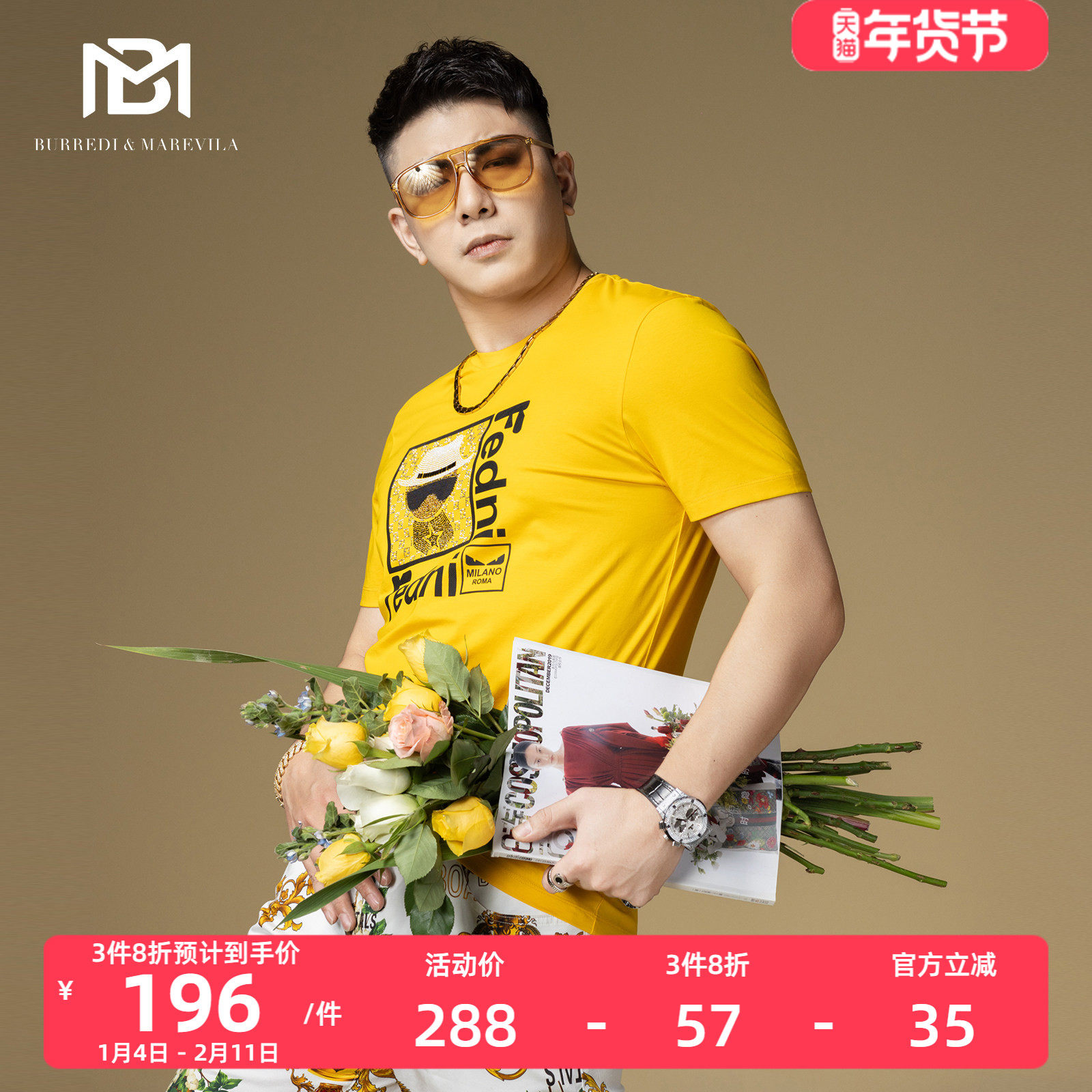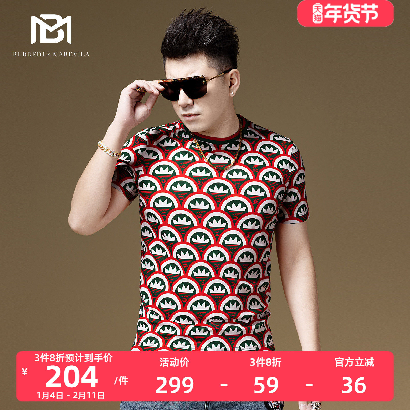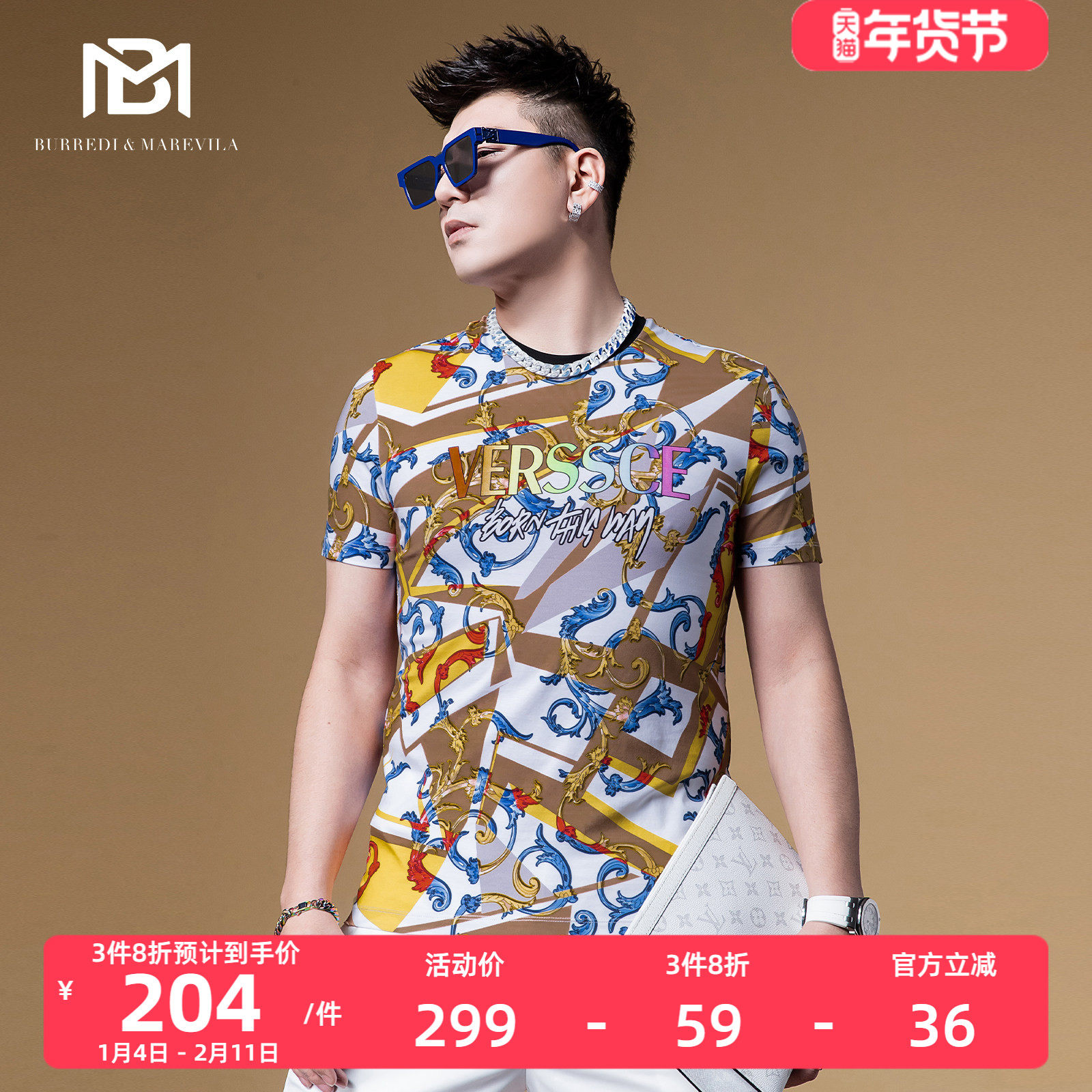 BM欧洲站男装2022新款复古印花巴洛克高端t恤男短袖潮牌潮流夏季