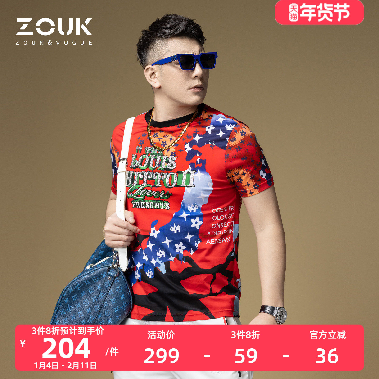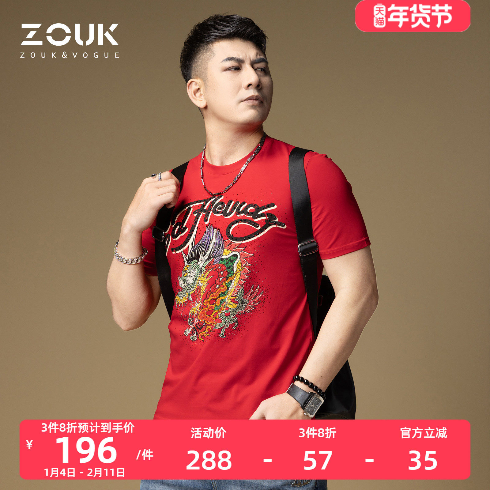 ZOUK龙年印花烫钻高端t恤男潮牌潮流短袖2024新款男体恤修身夏季