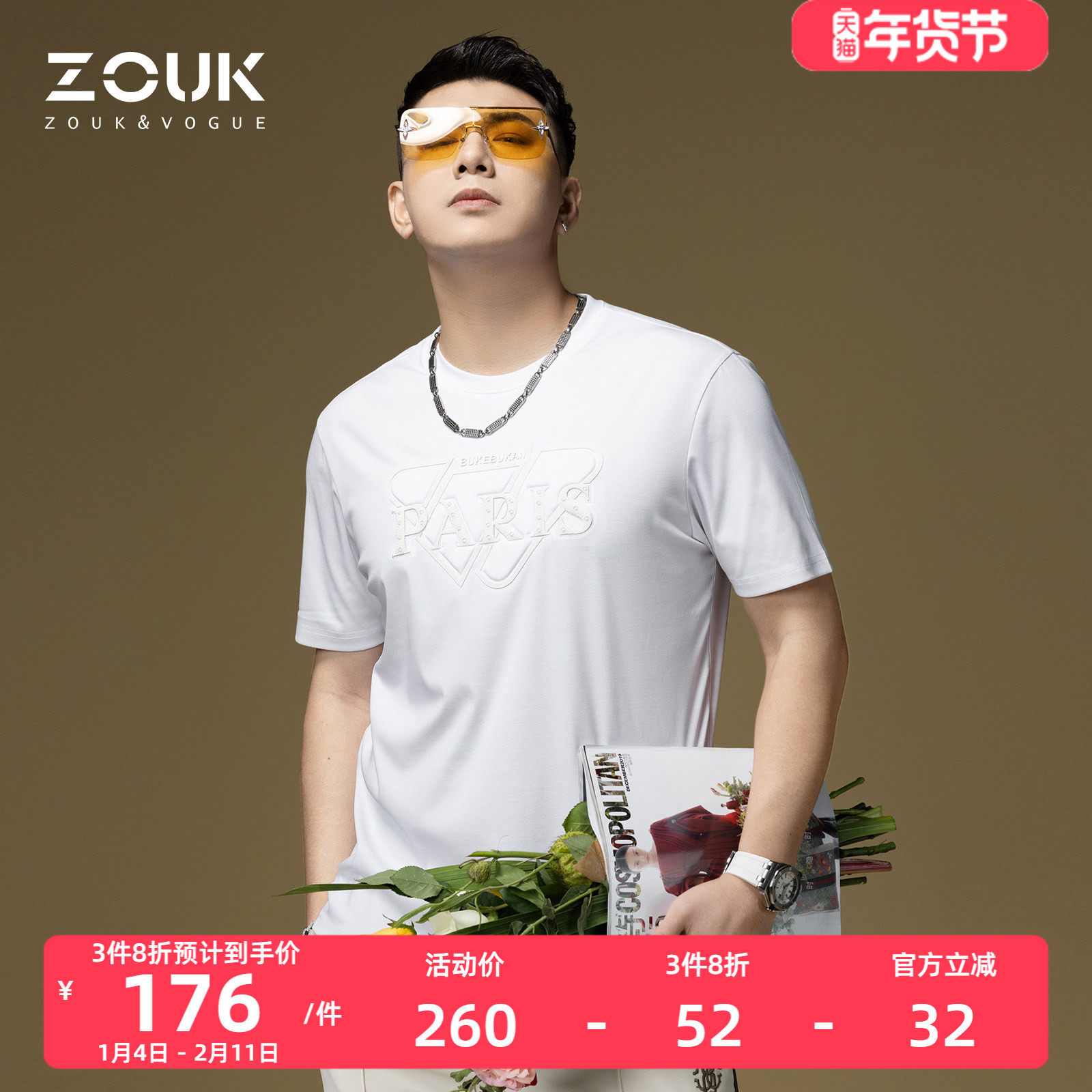 ZOUK欧货潮牌男装高端t恤男字母印花宽松短袖2024新款男体恤夏季
