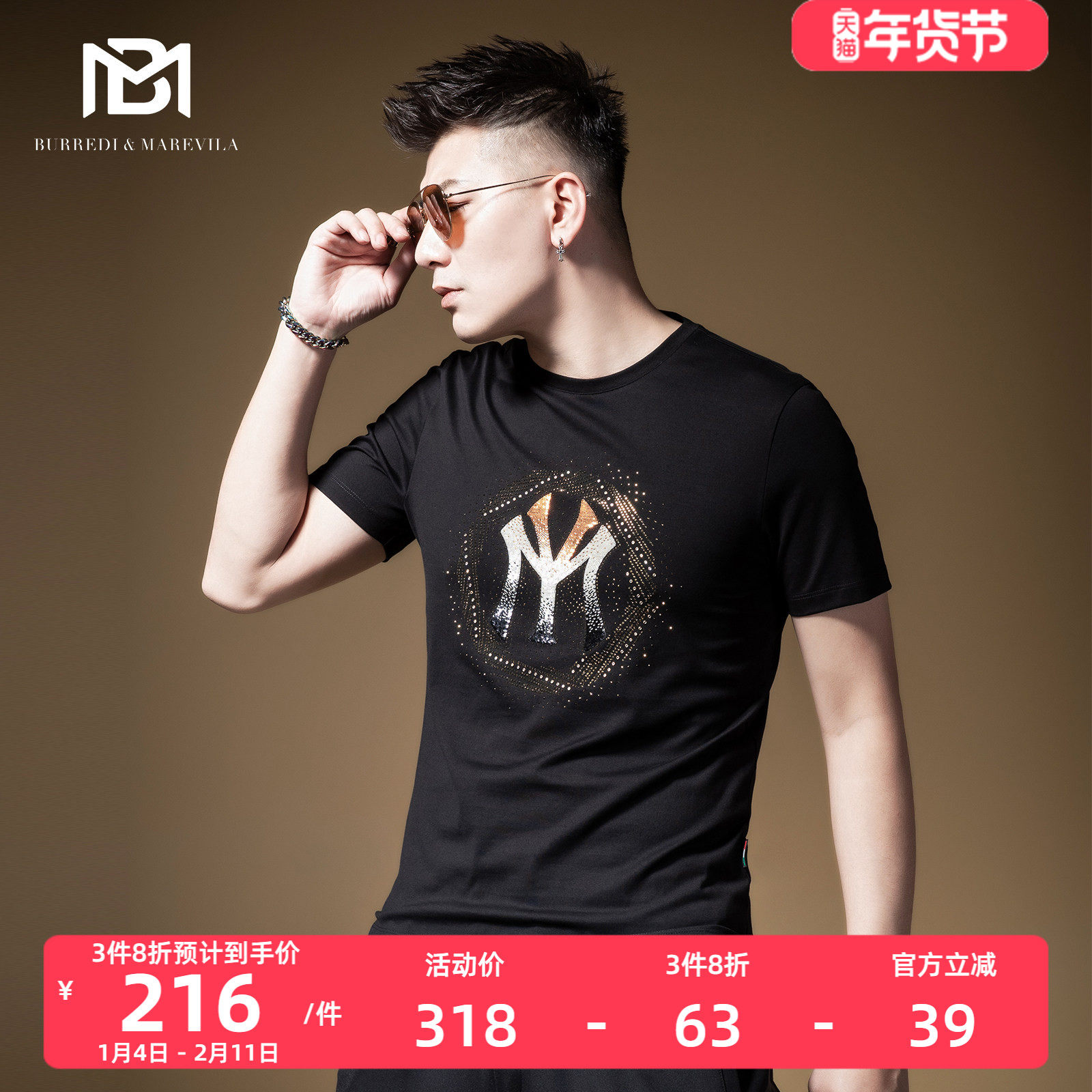 BM欧货高端t恤男短袖潮牌百搭烫钻男士半截袖潮流港风修身体恤夏
